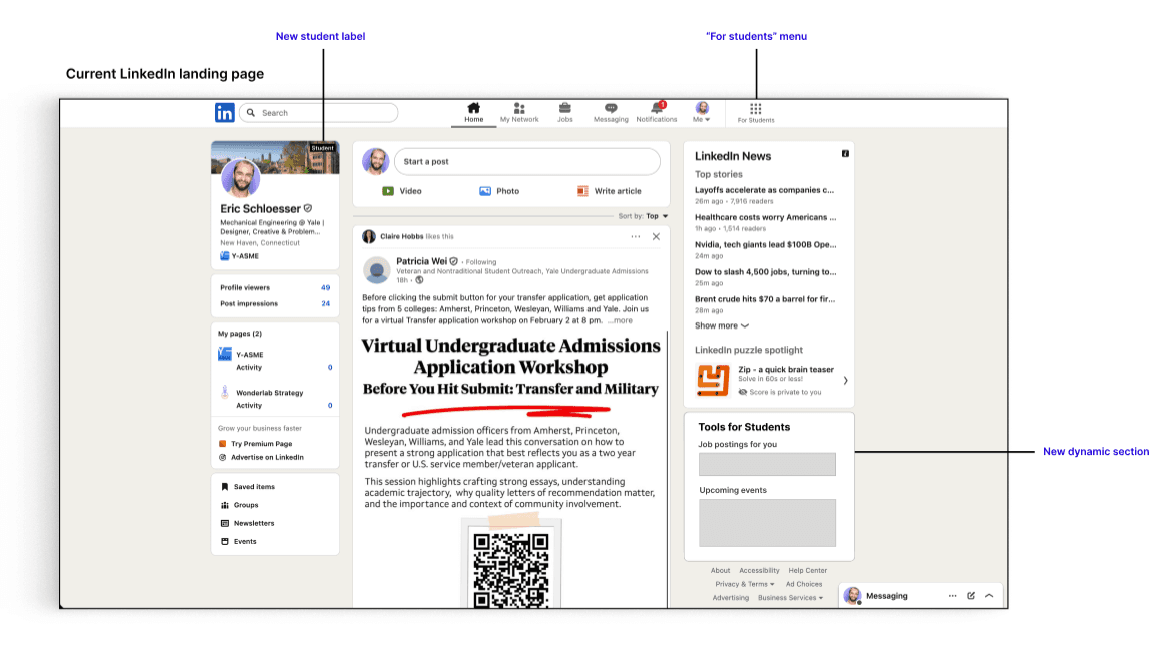 A key insight was that the concept has to feel native to LinkedIn to have a realistic shot at adoption. The best design here isn’t flashy, it’s consistent with LinkedIn’s existing patterns so users don’t have to learn a “new LinkedIn.”
